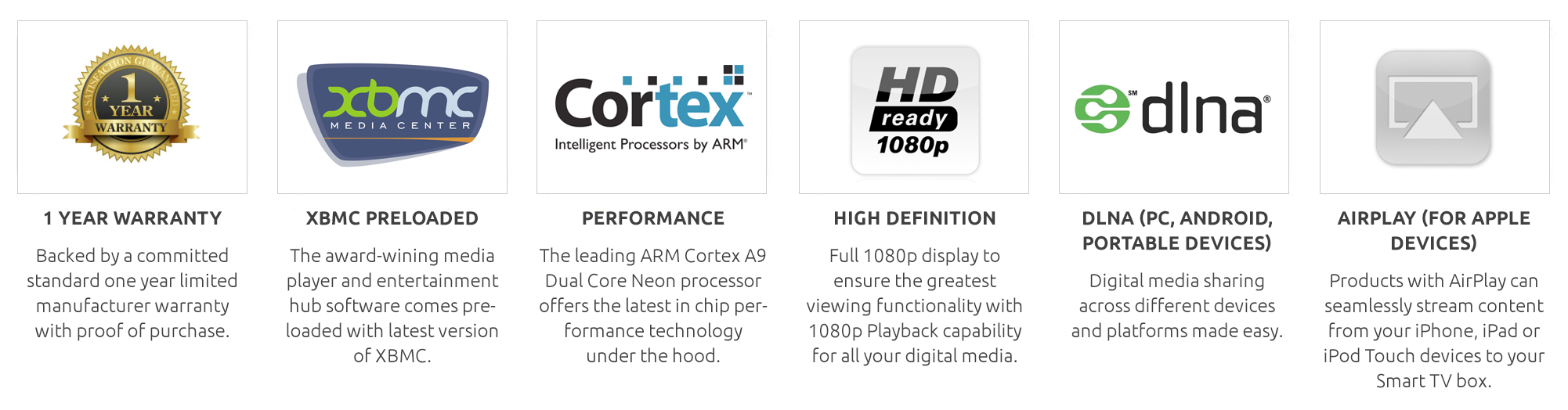 Once powered up, this Smart TV Box comes preloaded with XBMC for instant control of your new media entertainment hub. Google Play Store comes preloaded to enable instant viewing and downloading of your favorite Android Apps. Take immediate use of your large display with the built in Google Chrome Browser, to jump start surfing the net.