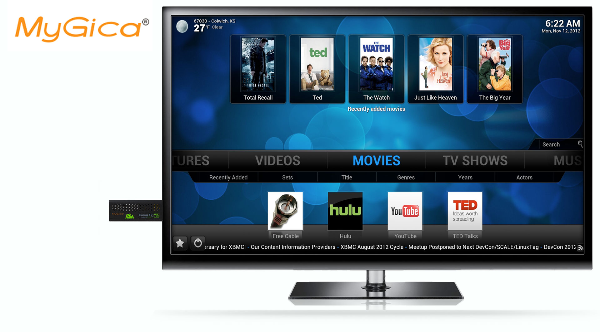 The MYGICA ATV 120 is a small gadget - the same size as a USB Disk-on-Key, but with full Android capabilities and multimedia services. Dual Core HDMI Stick ATV120 is packing a dual-core ARM Cortex-A9 processor clocked at 1.5GHz, 1GB of DDR3 RAM and Android 4.1 which is a big improvement over the HDMI Stick ATV100. Think of MYGICA ATV 120, as a great travel companion.